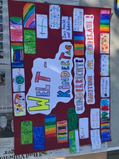 Anlässlich des Weltkindertages gab es auch eine Aktionsstation, die auf die demokratischen Werte aufmersam machte.