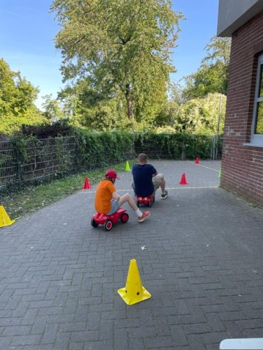 Die Kinder mussten verschiedene Übungen meistern: langsam fahren, über ein schmales Brett balancieren und sogar einen Becher im Fahren von einer Stange zur anderen transportieren. Nicht ganz einfach, aber mit viel Spaß und Erfolg gemeistert!
