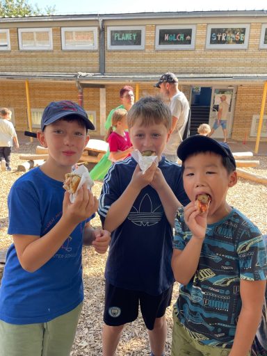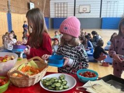 Alle Kinder der Vorklasse und der ersten Klasse durften sich mit den leckeren, gesunden Zutaten ein eigenes Frühstück zubereiten.