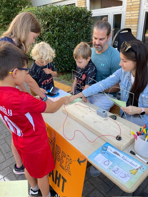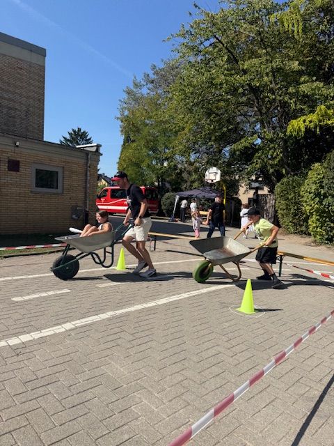 Die vielseitigen Spielestationen sorgten für viel Spaß und jede Menge Action: Die Kinder durften sich am heißen Draht ausprobieren, ein Wasserwettrennen oder Eierlauf absolvieren, den Fußball beim Torwandschießen versenken oder gegeneinander beim Schubkarrenrennen antreten.