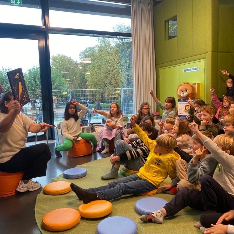 Die 3. Klassen ließen sich von dem heutigen regnerischen Wetter nicht aufhalten. Sie machten sich auf den Weg zur Stadtbücherei.