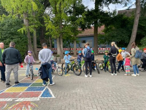 Das freiwillige Angebot war ein voller Erfolg: Eltern und Kinder kamen mit Fahrrad und Helm auf den Schulhof, um gemeinsam zu üben.